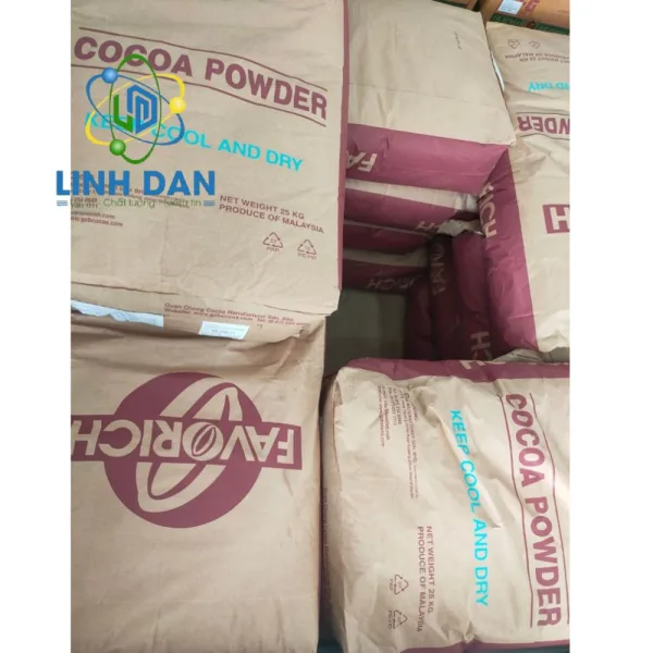 CÔNG TY TNHH XUẤT NHẬP KHẨU DỊCH VỤ LINH ĐAN chuyên cung cấp bột Cacao FAVORICH (25kg/bao) nhập khẩu chính hãng từ Malaysia với nhiều công dụng trong việc chế biến thực phẩm, món ăn thường ngày như: bánh kẹo, nước giải khát, socola,… với giá cực tốt.