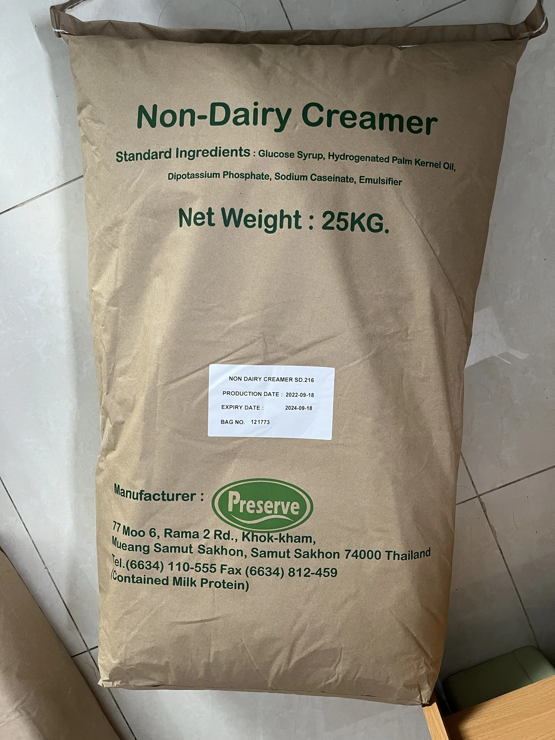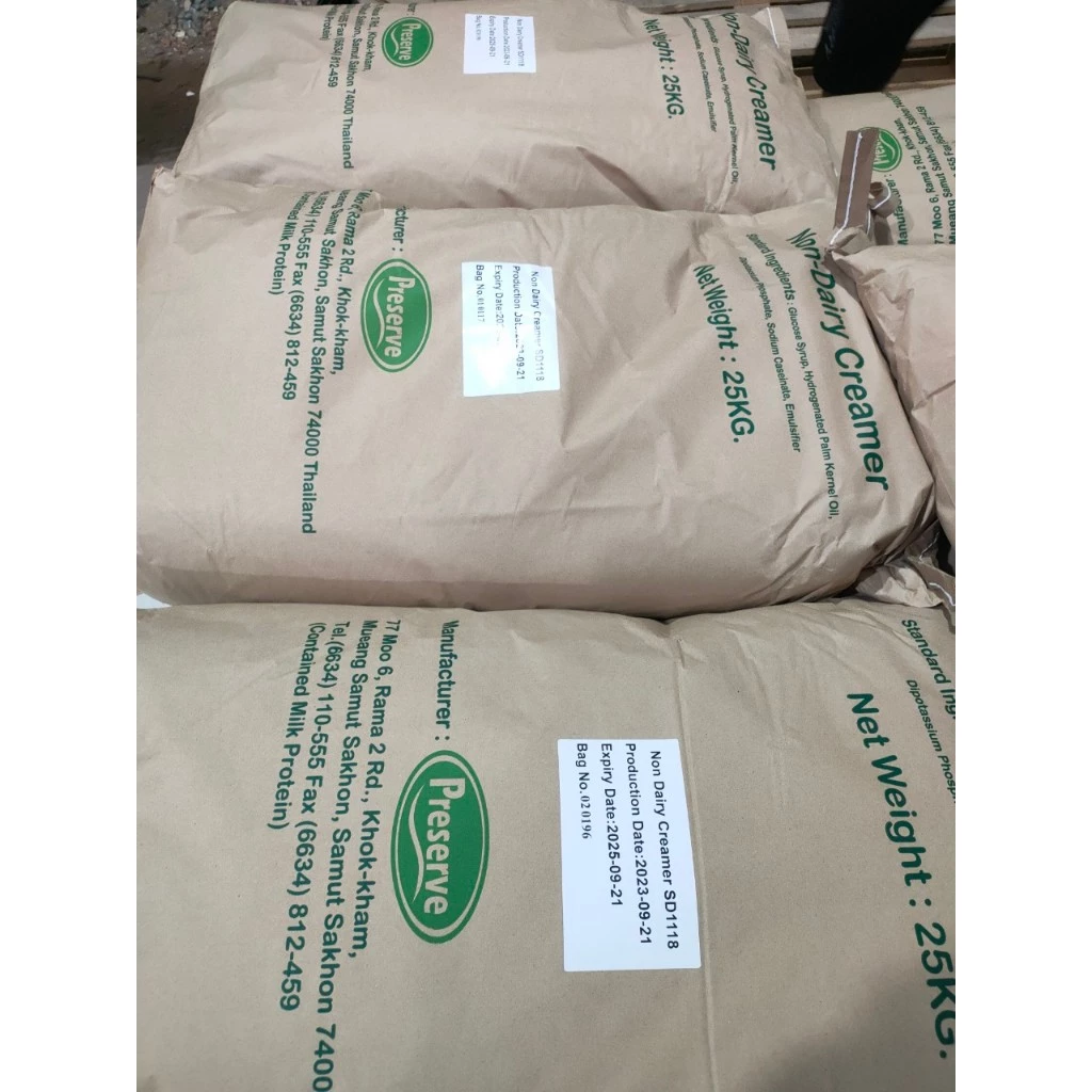 Bột kem không sữa – Non-dairy Creamer Preserve 841 Thái Lan (bao 25kg) là bột kem béo thực vật, nguyên liệu chính dùng để làm nguyên liệu pha chế trà sữa. Sản phẩm làm tăng độ béo ngậy cho thực phẩm. Hiện nay, Công Ty TNHH XUẤT NHẬP KHẨU DỊCH VỤ LINH ĐAN đang cung cấp Bột kem béo Non-dairy Creamer Preserve 841 nhập khẩu chính hãng với giá cả cạnh tranh.