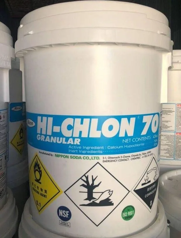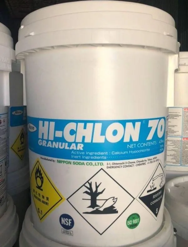 Chlorine Nippon Nhật Bản 70% (Hi-Chlon 70) là sản phẩm hóa chất có hàm lượng Clo & tính ổn định cao giúp tối ưu hiệu quả, được sử dụng phổng biến trong xử lý nước hồ bơi, xử lý nước, dùng để khử trùng, khử khuẩn, tẩy trắng.