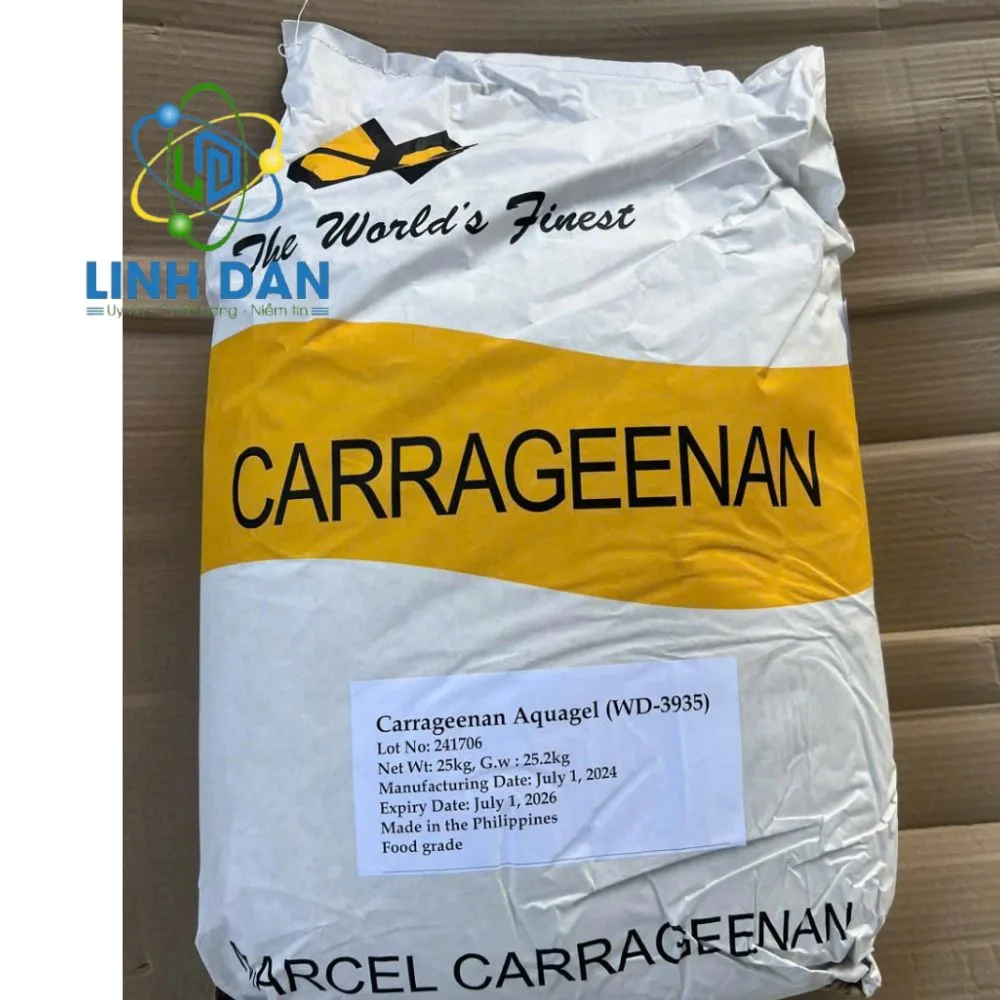 Hóa chất Linh Đan hiện nay đang cung cấp sản phẩm Phụ Gia Tạo Giòn Dai Carrageenan (25kg/bao) nhập khẩu chính hãng từ Philipines có chất lượng cao, giá thành thấp tại TPHCM.