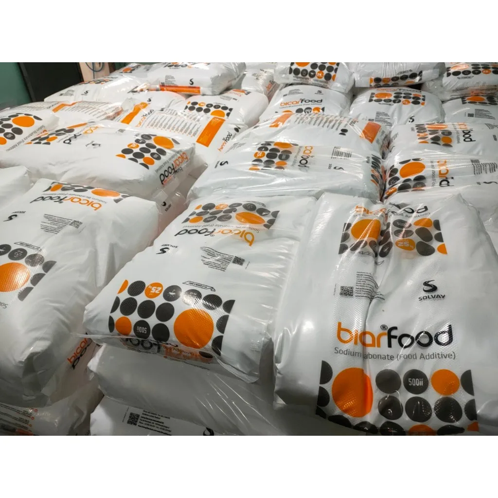 - Sodium Bicarbonate NaHCO3 Solvay là loại được dùng trong thực phẩm có công dụng tạo độ xốp, giòn cho thức ăn