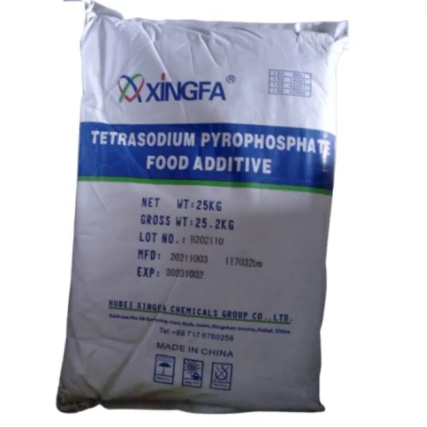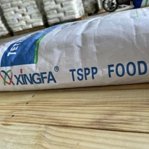 • Tetrasodium Pyrophosphate (TSPP) loại bao 25kg nhập khẩu trực tiếp từ hãng Xingfa – Trung Quốc là một chất phụ gia được sử dụng vào các sản phẩm từ thịt cá nhằm mục đích tạo độ giòn dai, dẻo chảy, liên kết cho sản phẩm như: Xúc xích, giò, chả cá,…
